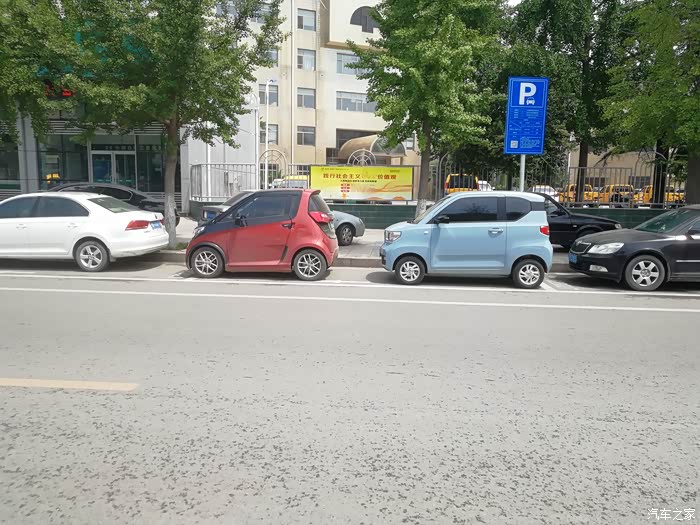 今天出去办事,路边有半个车位,侧方停车,进去正好