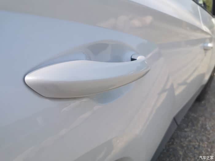 是不是没有看到后车雨刮,因为它被隐藏进了上面的凹槽里,既不影响使用也美观了不少。这个白色车漆在阳光下近看,竟然有种细腻的珍珠白质感,在细节上又默默加分了。