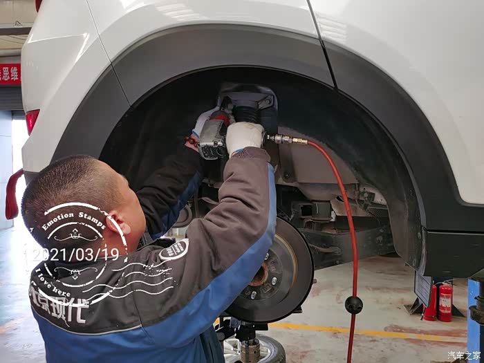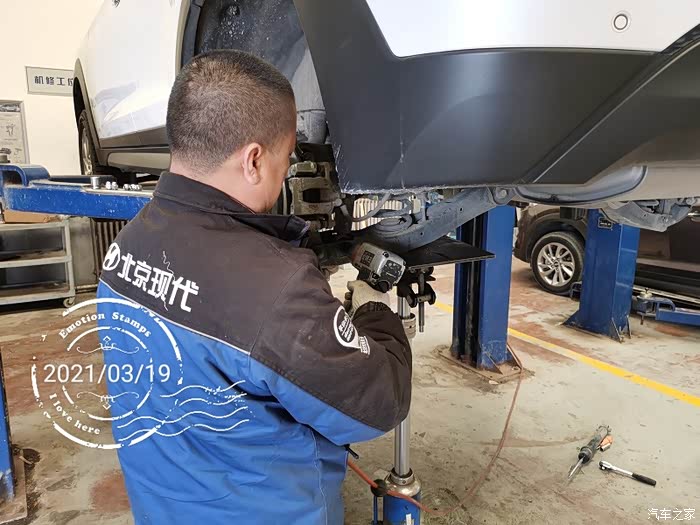 上轮胎螺丝,全程气动扳手,我觉得力矩不一定够,但是老师傅说没问题,足够。