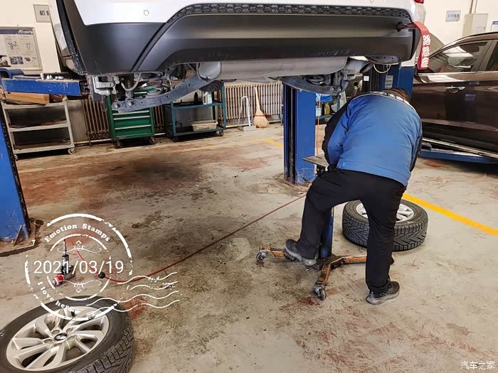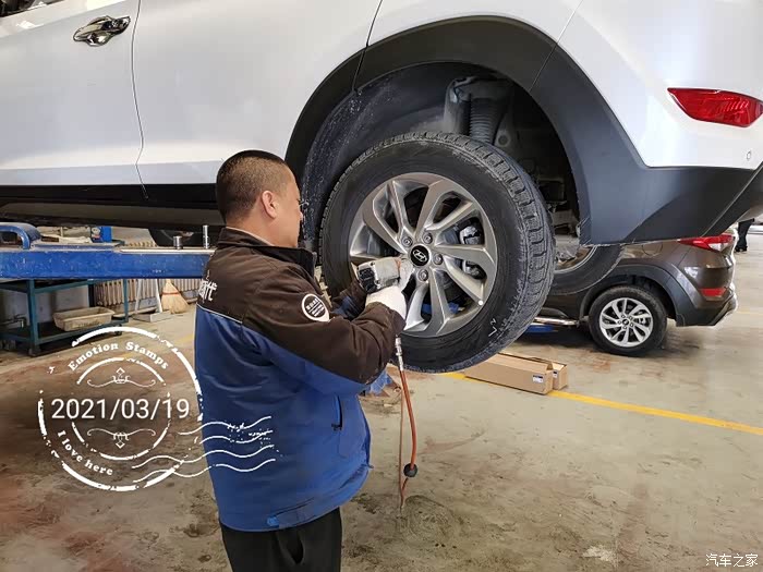 先拆后轮。师傅出境!这位是本店车间主任,相当牛!和我说冬季轮胎该换了。我知道,但是这几天据说还有雨夹雪。