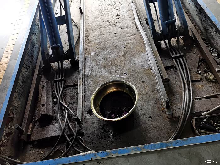 这个工位没办法直接把机油放到机油回收桶里,只能用个铝盆接着,4L的量很快就放完了的。