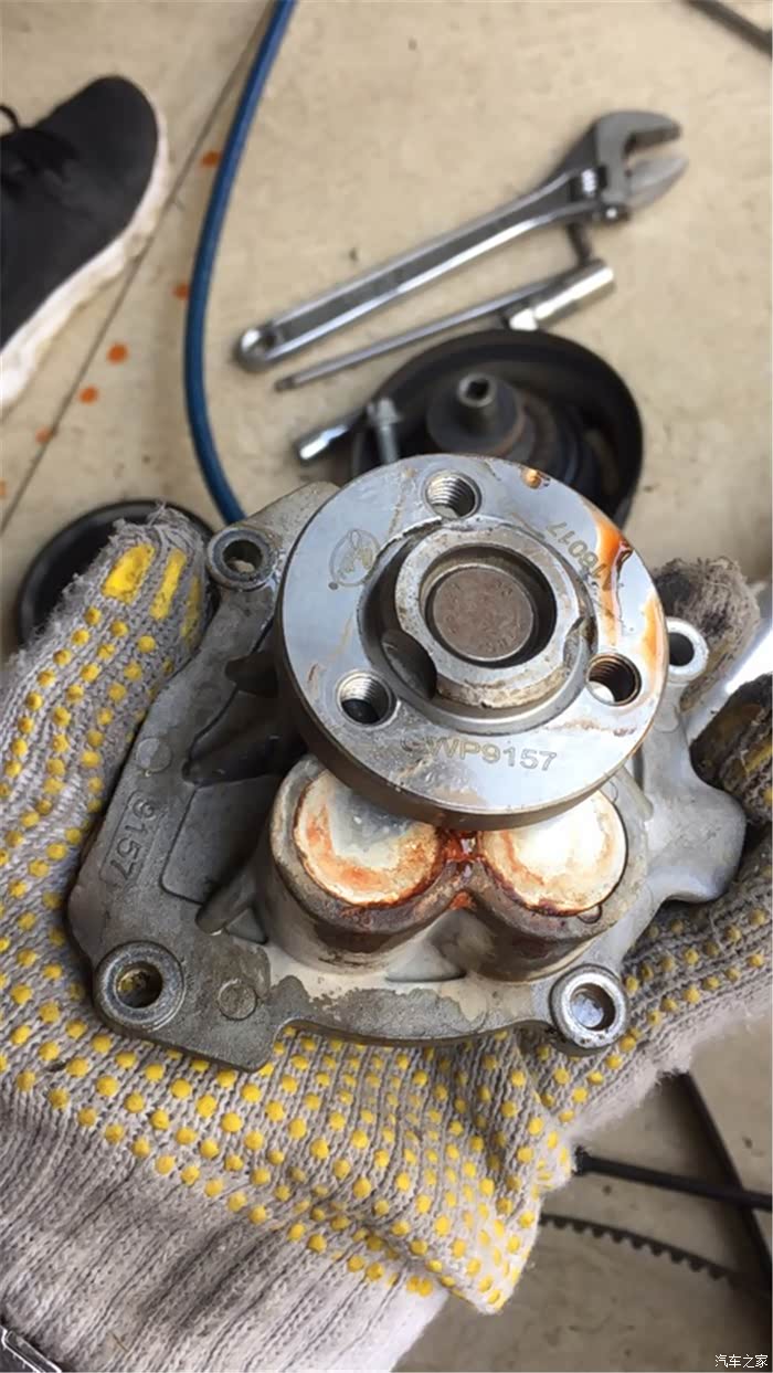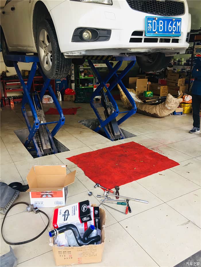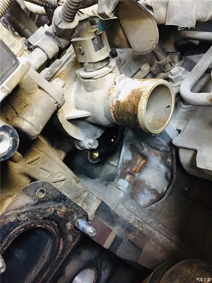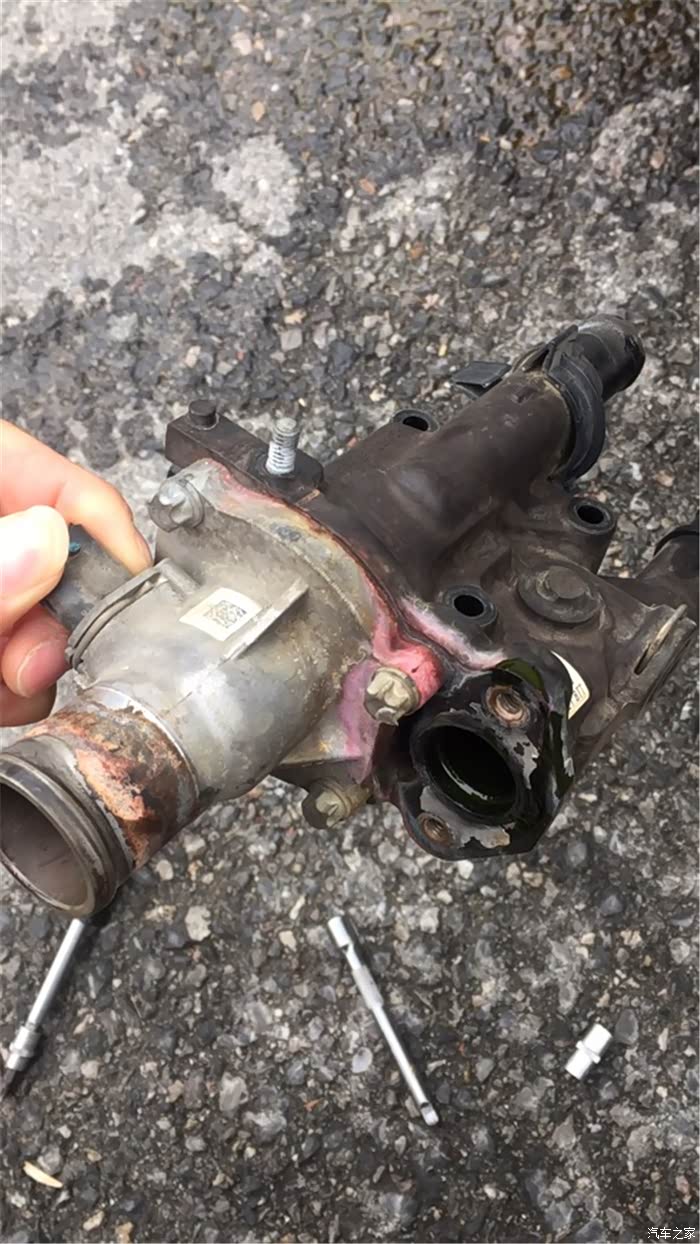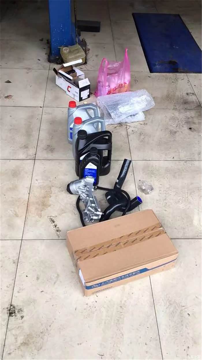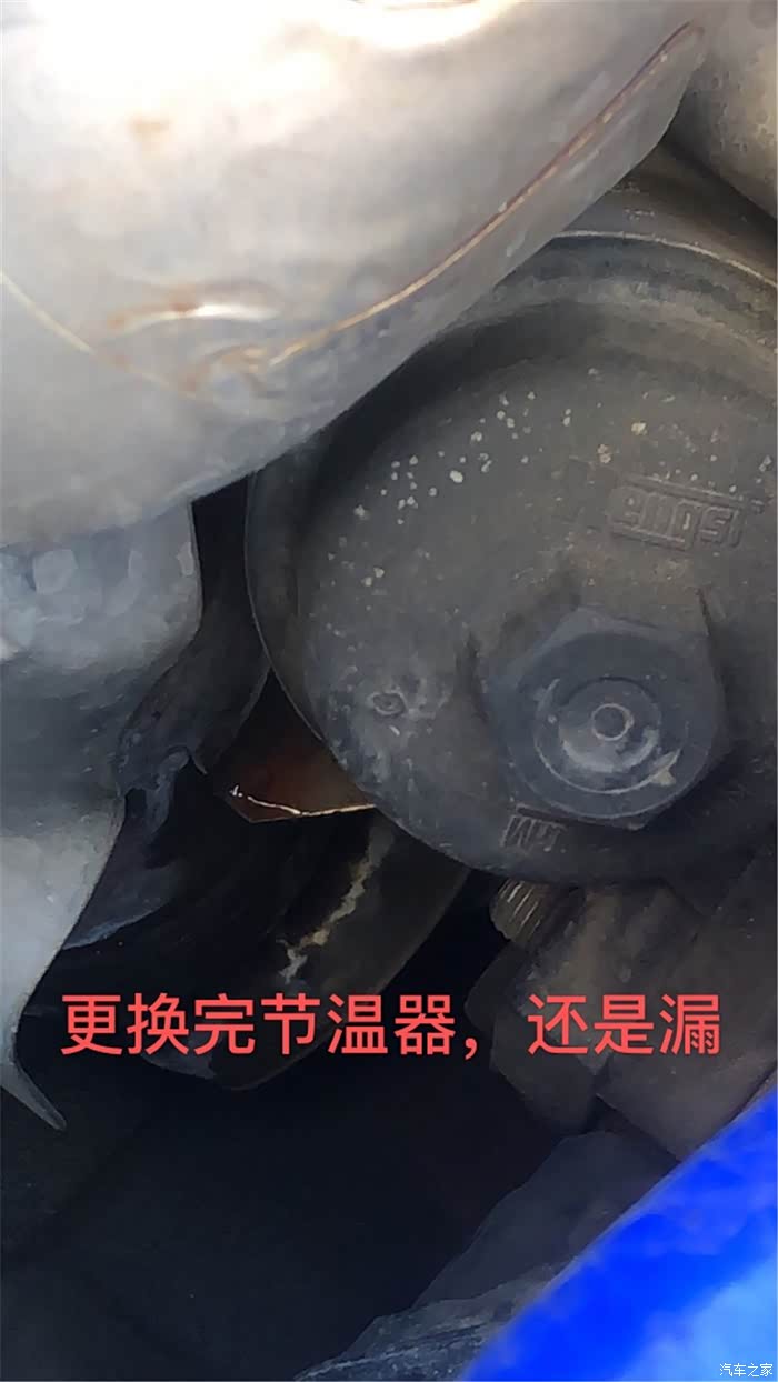 由于底盘没拍,没想到节温器漏,只能汽修店拿货