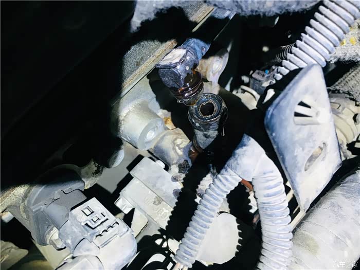 车主幸亏来换灯,我发现管子不行了,上次更换的原厂的,才半年,这次差点有趴窝,立马晚上来换硅胶管,还下雨
