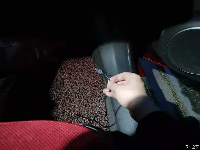 线从点烟器出来,走副驾驶座椅下面穿过来。