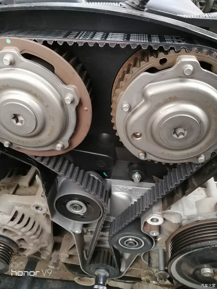 13款老科,跑了快12W公里了,一直都是老婆上下班开。期间打开正时皮带罩,看过正时皮带,感觉问题不大。最近在家有空,寻思换了吧,问过4S,工时加配件要1700个大洋,还不算发电机皮带。果断当地代理商拿货,省的钱买工具不香吗。换好后又用好几年。下面上图,其实没啥难度。