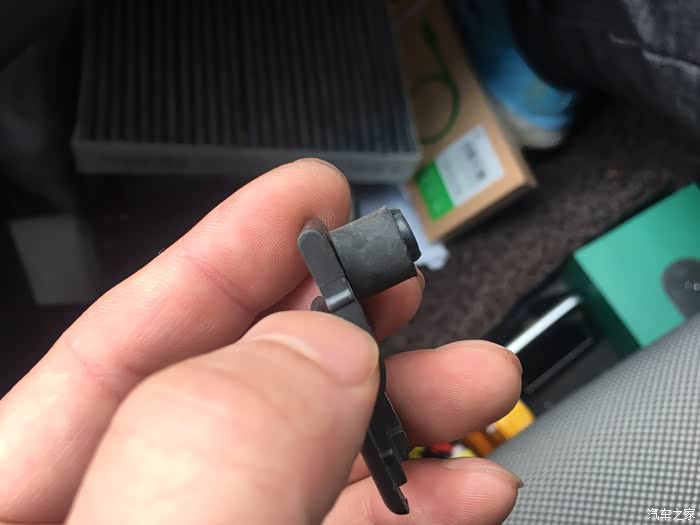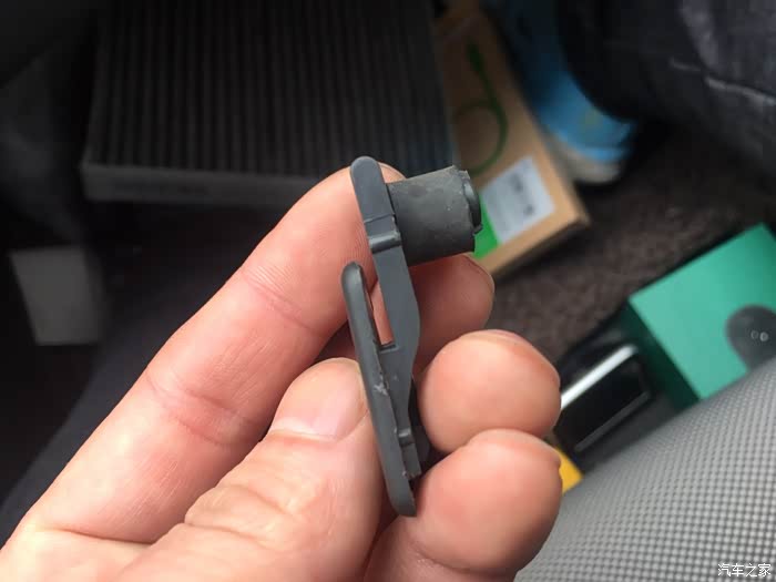 再来仔细看看这个卡子。这个圆轴就是手套箱开合的滑轮!