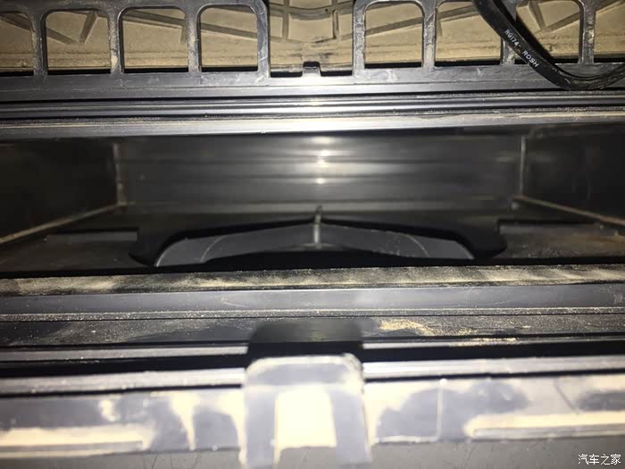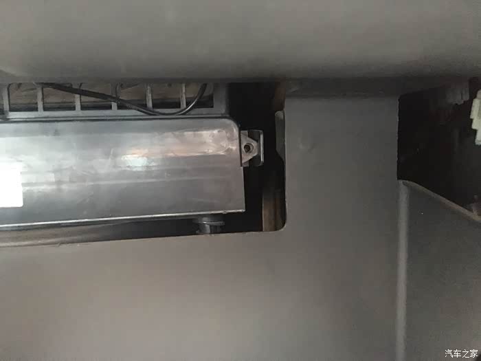 这个就是空调滤芯的位置!这个地方有三个卡子!俩边跟中间位置各一个!俩边手可以扣开,中间就要借助上面那个小铁丝撬一下了。