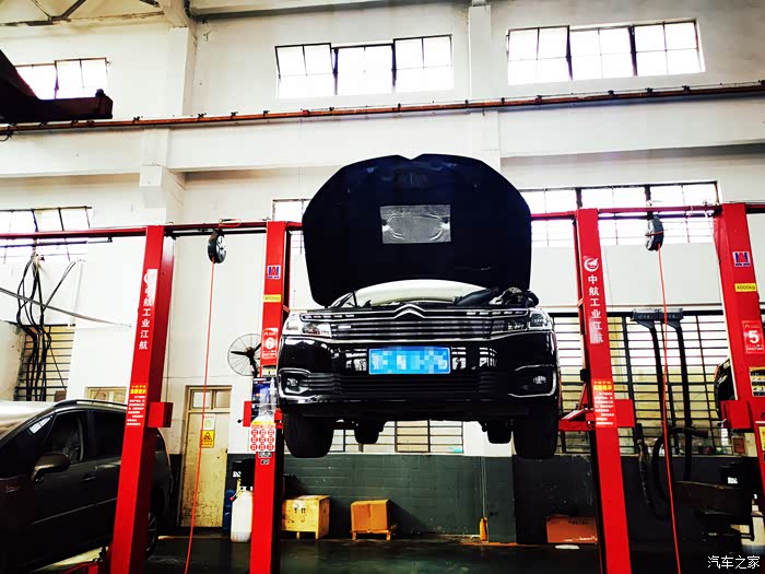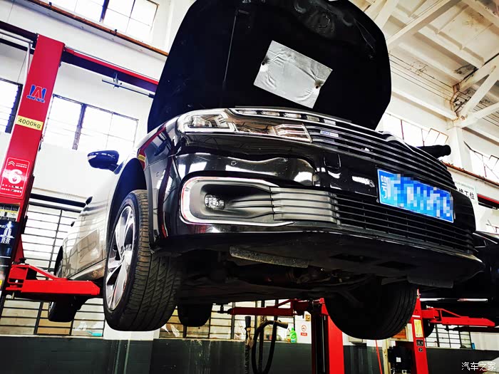 这次去了我买车的那家4S店,附近有两家这个4S店,感觉这家要显得正规一些,车间也大,设备显得也新一些,六六被举的高高的全面做检查。