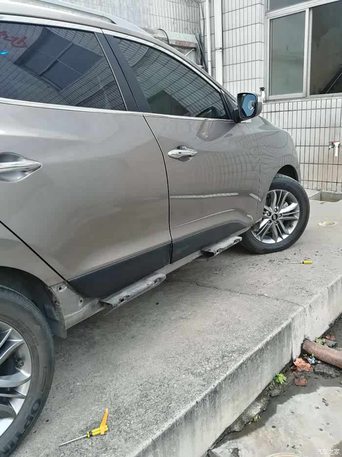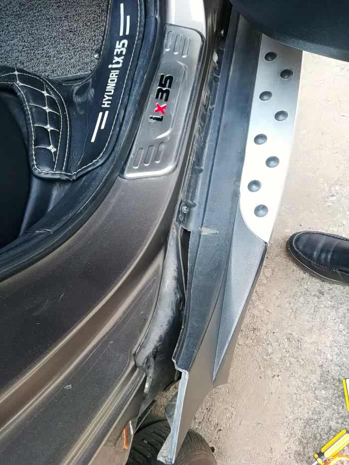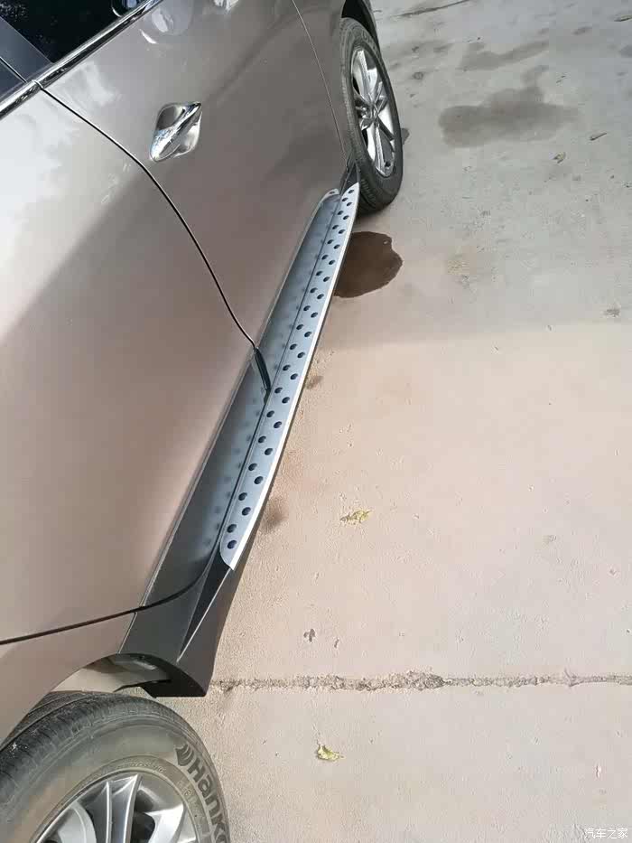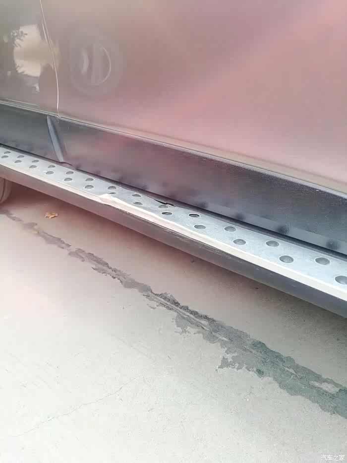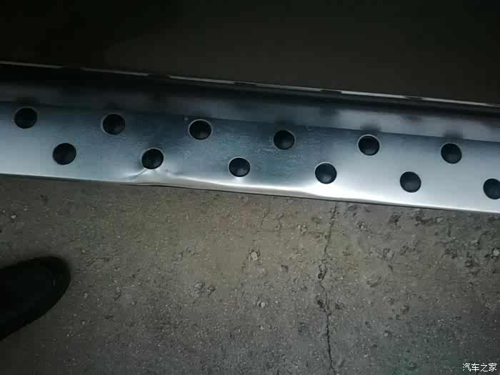 前几天在商场停车时,由于停车位较窄,而且右边紧靠一棵小树,目测能进去,而且我把后视镜都收了,因为是向右前方慢慢行驶,车子进去一半动不了了,好像有阻力,轻点了一下油门,嘎巴一声,我去!下车一看,右侧踏轻吻了一下小树,导致右侧踏变形。于是赶紧倒出来,找其他车位停好,心情也不美丽了。下次再也不敢想当然了。庆幸吧,如果没有侧踏,车门子估计就亲上了,损失更大。稍微变形,不处理也没事。但是我是个讲究人,看着有点扭曲的侧踏,心里不舒服。