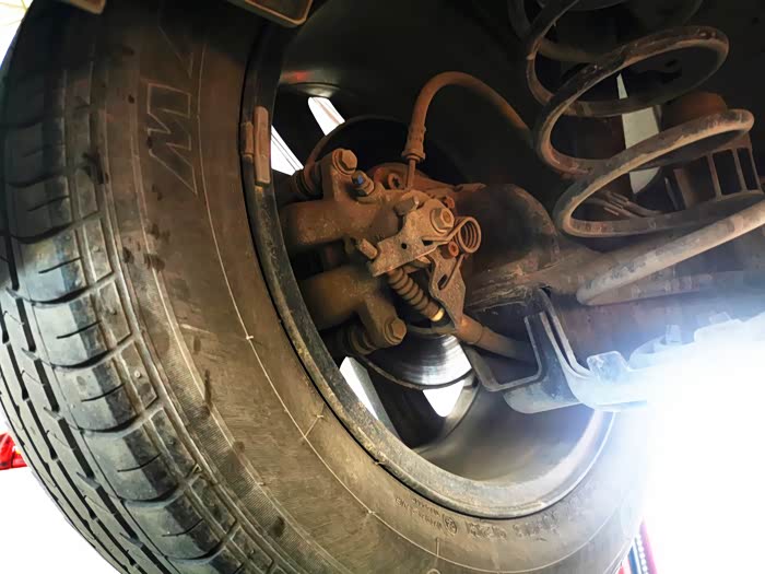 刹车系统还好,刹车片还厚着,只是上面粘到了杂质,师傅给清理了干净。