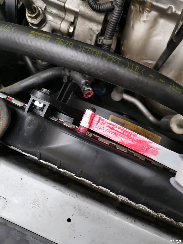 完工后,把水壶掺好防冻液,发动运行了一段时间,直到水开始循环,风扇启动。仔细察看了各个接口和长城齿的位置,没有发现有渗漏,很高兴。运行了两天了,也没有发觉渗漏,再持续观察一个月,向大家报告。