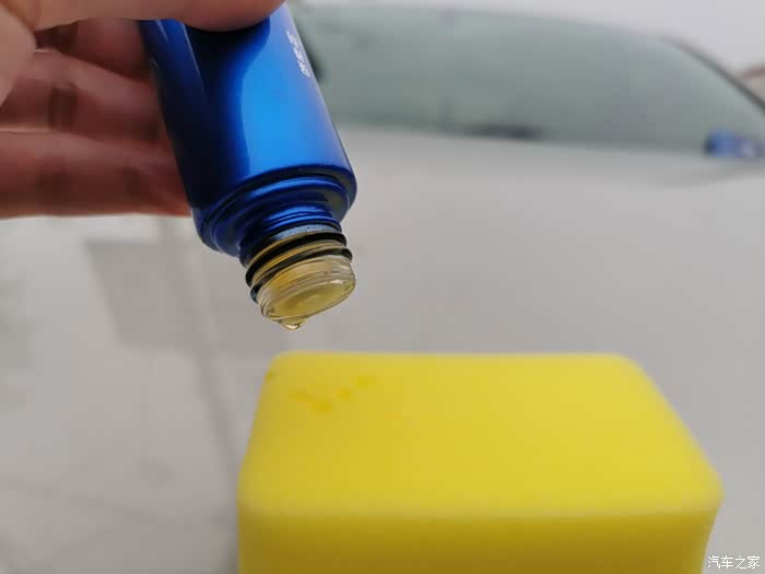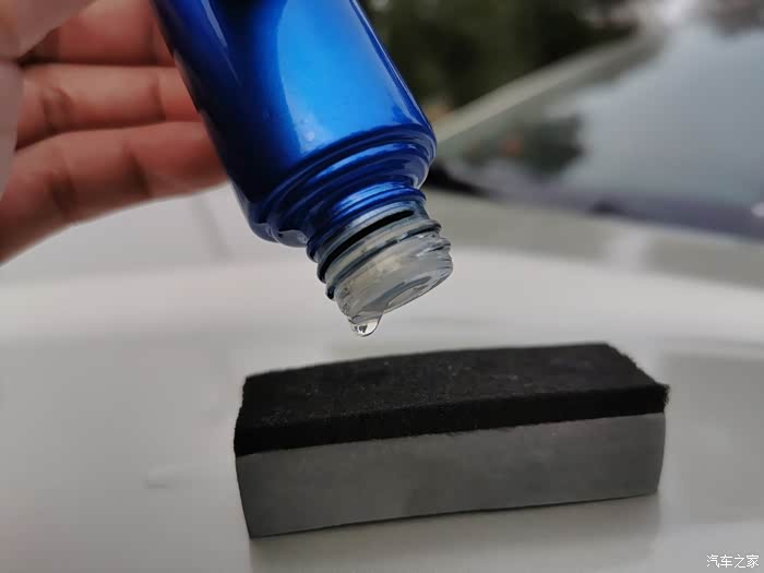 按照说明书上将镀晶剂滴在海面上以40x40厘米的面积区域,用井字形手法进行涂抹,然后等待3-5分钟用毛巾来回擦拭至漆面光亮为止。