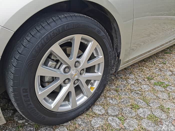 来拍一张,原厂升级的固特异御乘二代的高端胎,静音效果不错,很舒适,纹路也充满科技感