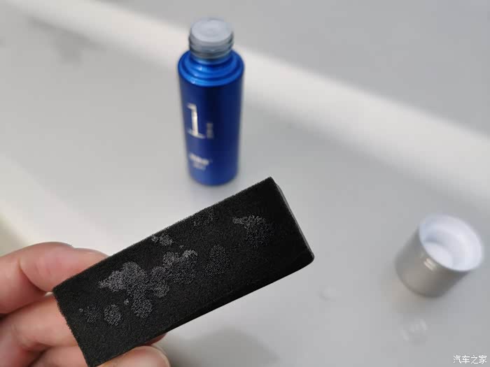 流程还是一样,滴保养剂在海绵上然后井字形手法涂抹,海绵大,加上有之前的练手,现在熟练多了。