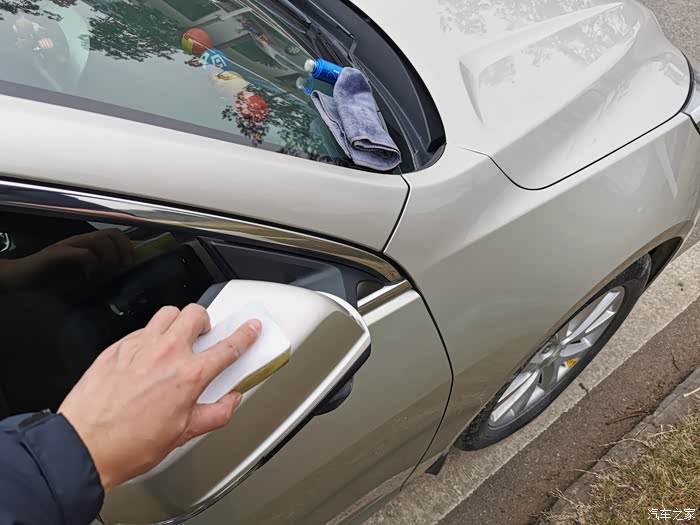 小宝贝玩了一会过来凑热闹帮我擦了下车门,毕竟化学用品,还是有点味道的,擦了2下哄走她了,自己闺女当然要爱护了。