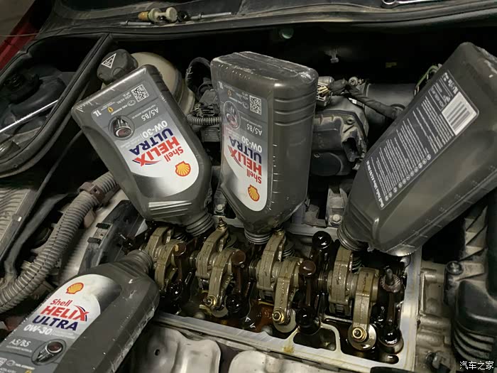 上次用的金美孚也还是不能抵挡住的岁月的侵蚀,时间太长了,需要更换下机油。打开机油加注口发现里面的扰流板上面一层的油气沉积物,强迫症的我受不了一定需要拆了清洗一下,加上这次从0-40的金美孚换成0-30的灰壳,还是需要清洗下放心,机油时间也长了,一桶壳牌的清洗油倒出来和洗洁精一样透明润滑。车子先开出去溜达一圈热热车,看看发现有什么别的问题没有,松油门顿挫,加速油门响应慢,需要点滴了,路边给吊了2瓶半的化清剂效果立竿见影,加速效果好很多,松油门的顿挫也没了,更换机油,清洗油,滤芯,后面顺便洗个车搞定。