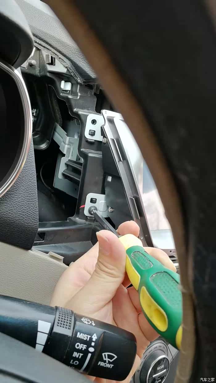 恢复电缆连接。电缆插头都是防差错,放心处理。安装中控屏,安装螺钉时注意不要螺钉掉落,否则很麻烦。安装时钟面板,安装空调出风口。一切恢复如初。
