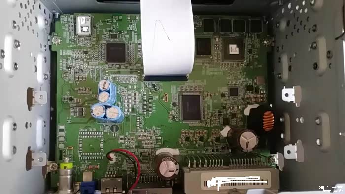 第二天开车再看,屏依旧不亮,收音机无声音,倒车有影响。因此首先判定导航主控板CPU虚焊了或彻底坏了(网上多数人反馈是CPU芯片由于高温或虚焊导致)。故计划先拆解热风枪吹看能否解决。