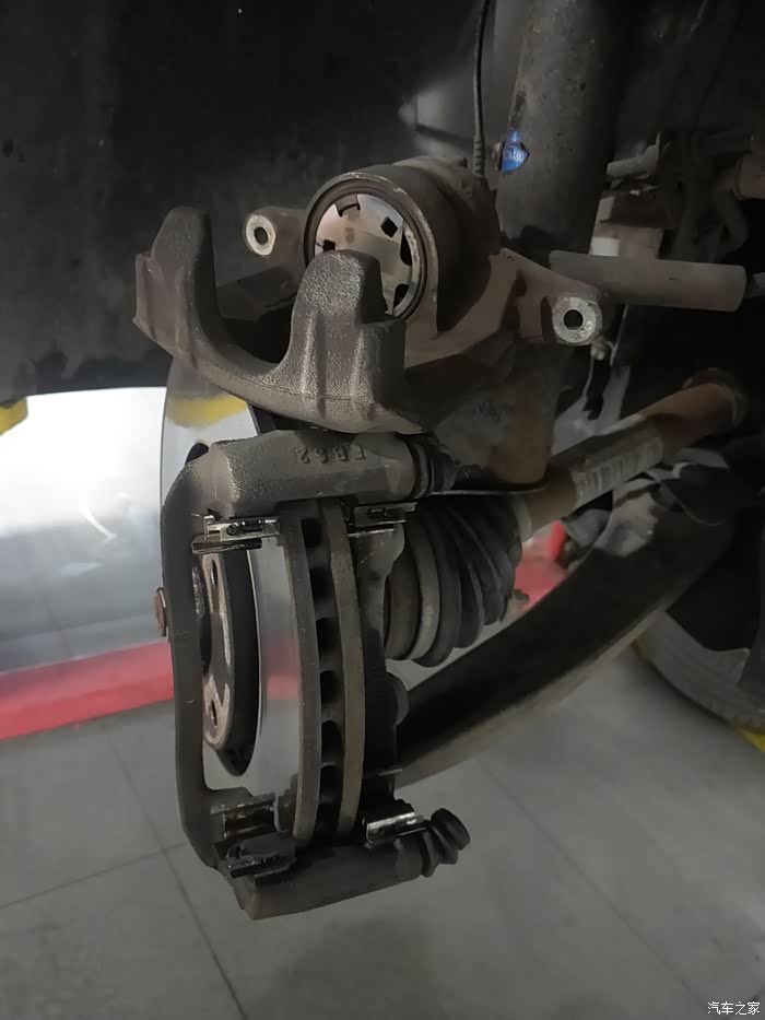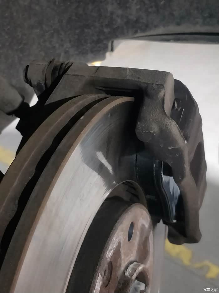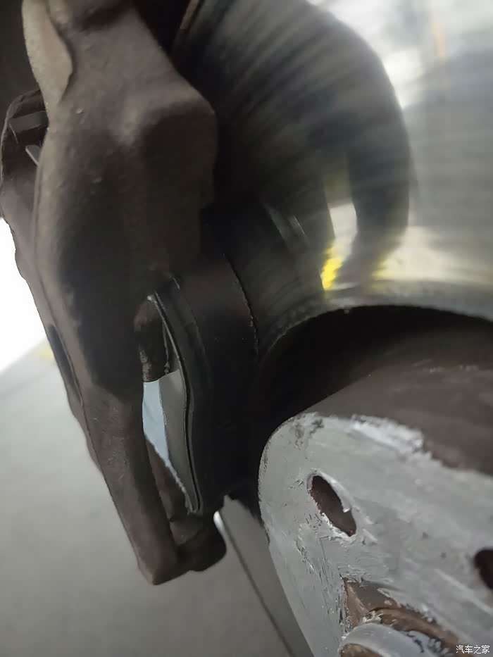 拆刹车片了,其实我的刹车片还挺厚,但是六万公里了从来没换过,刹车盘上面磨出槽沟了,小哥说,刹车时受热,时间久了刹车片就像烧砖一样变得越来越硬,太硬了就会磨盘,所以刹车片到了保养周期最好要更换
