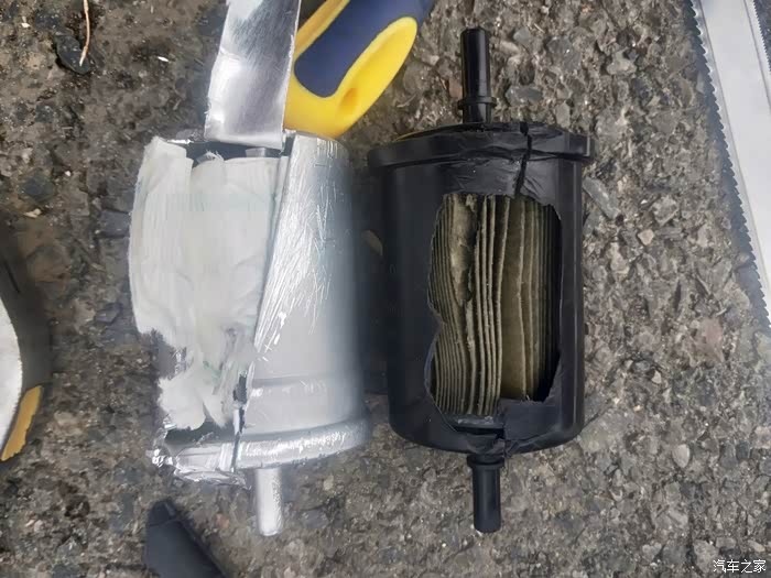 这是拆开的汽油滤芯,差不多三万多公里了一直没换,平时我都是在小加油站加油,师傅说挺脏的了,看来这个东西还是要勤换