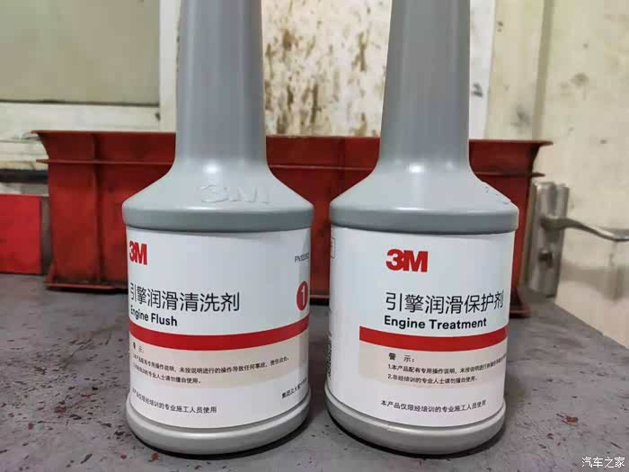 赠送的发动机清洗套餐。左边的清洗剂,加到旧的机油内,发动机运转10分钟,连同旧机油放掉,
