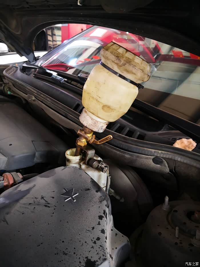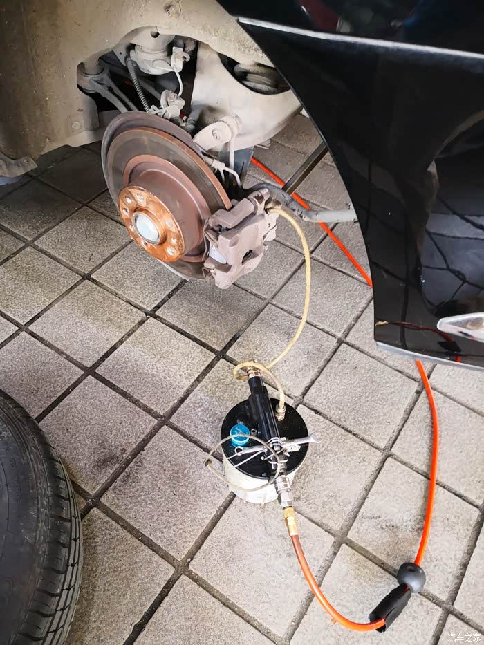 然后换刹车油,前面慢慢滴加,四个轮子刹车活塞处一个个抽。
