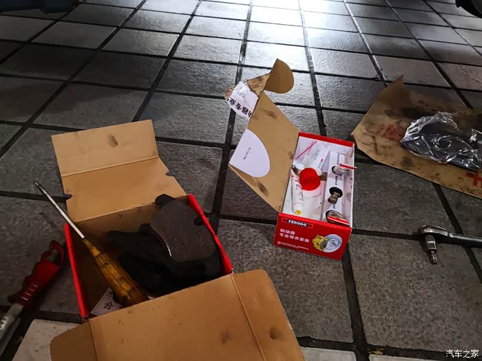 先换刹车片,力仕达的前片,菲罗多的后片。