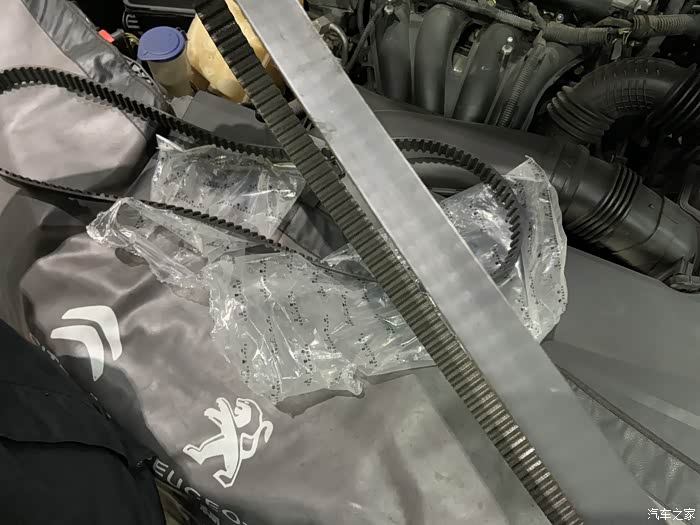 旧皮带,感觉还能开两年,换了心定一点,上次来保养的时候,另一位别克车友就说他皮带是开断的...我说那发动机有事没,他和我说没事........既然换了水泵就换了吧,你说是吧?7年3个月也可以正时套件里还有两个轮子