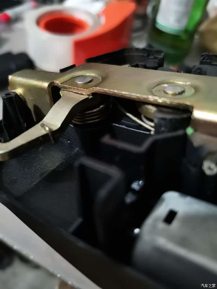 第二个原因就简单了,还是用“笨法”,直接小老虎钳伺候,把弹簧紧一下。因为自己动手,没法拍图片,但是不要拉得太紧,个人感觉会影响关锁的阻力。
