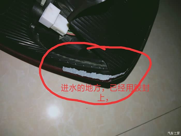 上线检测时发现左刹车灯不亮,平时马虎也看不见后面,仔细观察发现灯壳内发黑,拆开后灯内有水,足足有200ml,难怪油耗增加,自己动手丰衣足食,很有成就