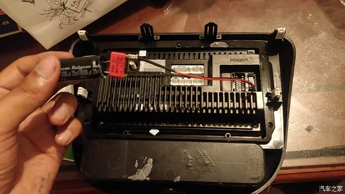 自己动手焊,红宝石25v10000uf并联威马小电容,替换图上左边那颗25v3300uf的原装电容,电容太大壳子放不下,飞线到壳外边随便固定起来。其实我并不不懂电容并联的意,看别人都这样换,跟个风。