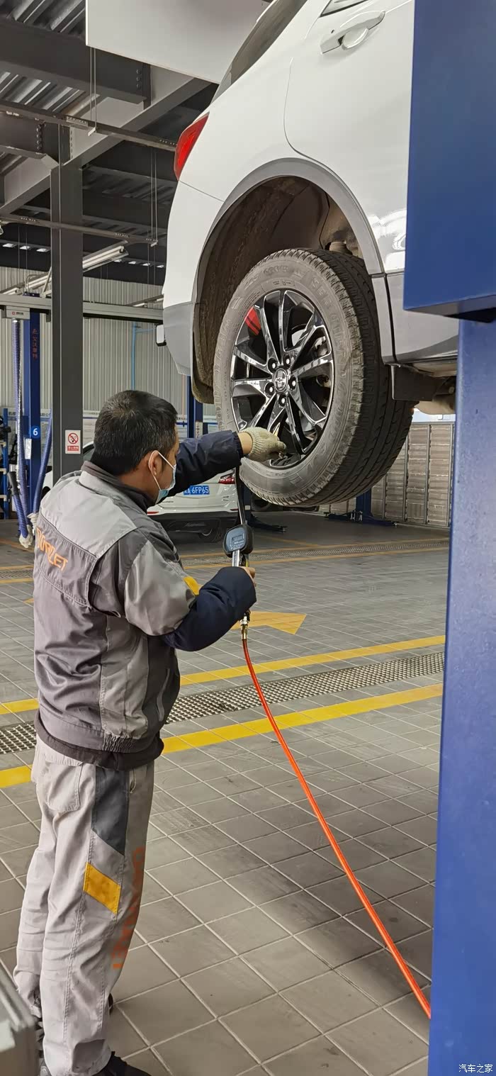 维修师傅去库房领取保养用的材料了,车等着上举升机!