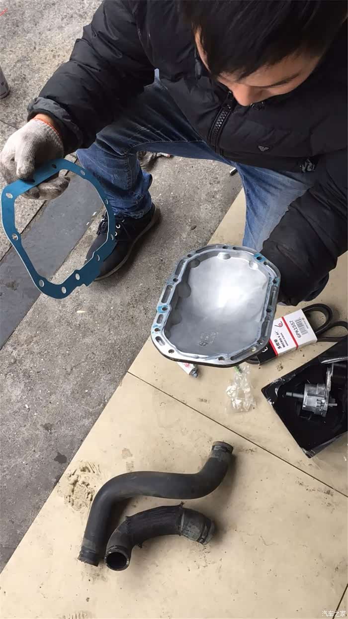 倒了15W,水泵没漏我很惊讶,但是还是换了把,,顺便换机油散热器,跑第二趟了,一个月之内,唉