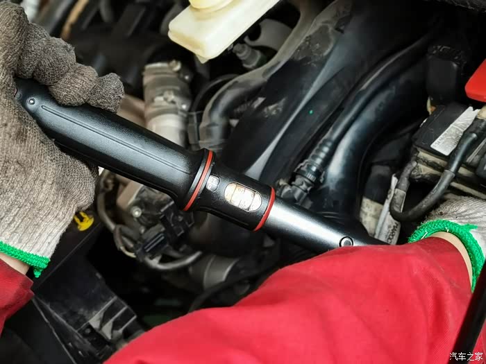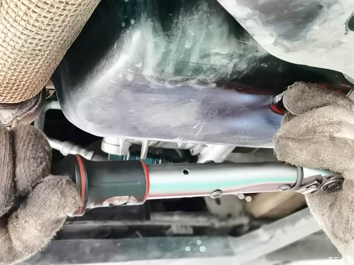 扭力扳手安装放油螺丝。