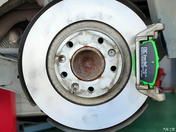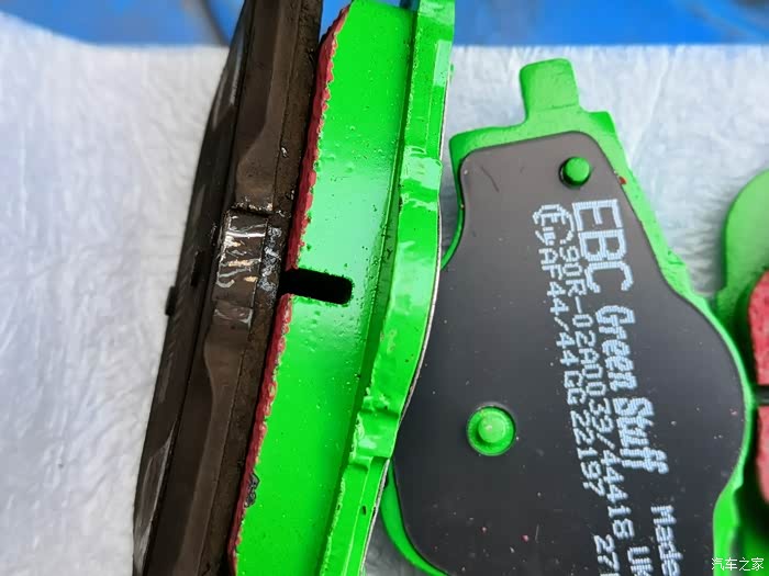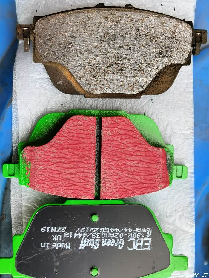 原车后刹车片磨损严重。