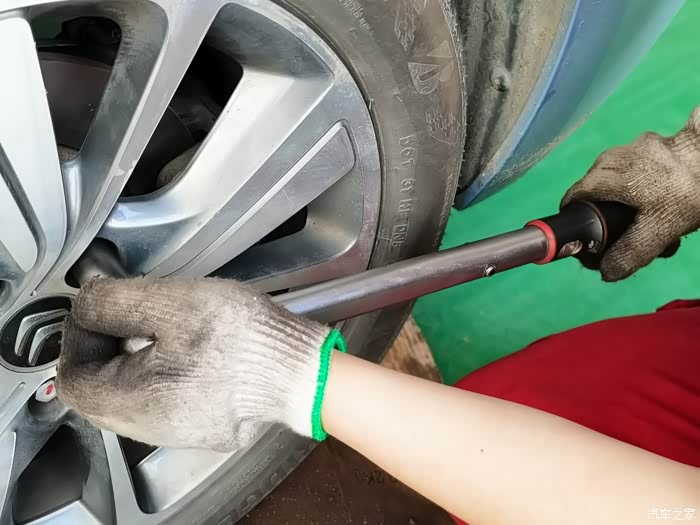 最后使用扭力扳手安装车轮。