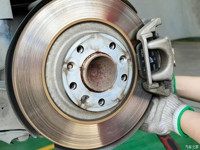 正在拆卸后刹车片、刹车盘。