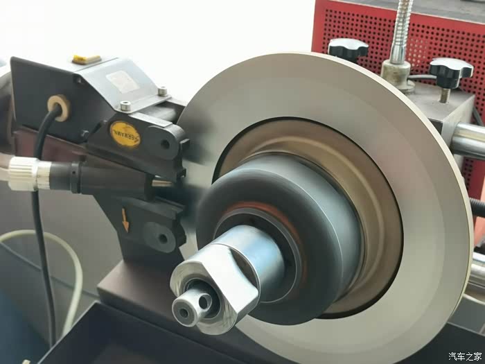 使用专用设备进行刹车盘修复工作。