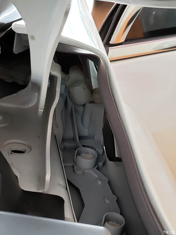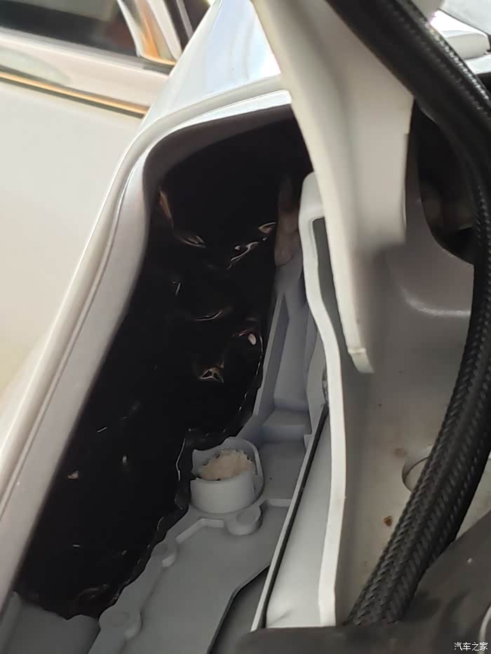 那次去改装喇叭做前门隔音(见前帖)时,顺便用止震垫的边角料把发动机舱两角上的洞给堵上了。记得买车前做攻略时,留意了被老款车低频噪音困扰的一群车友们交流的许多解决方案,这里也是有人提到的一个点,虽然可能压根没啥影响,既然不花钱就顺手给堵上吧。