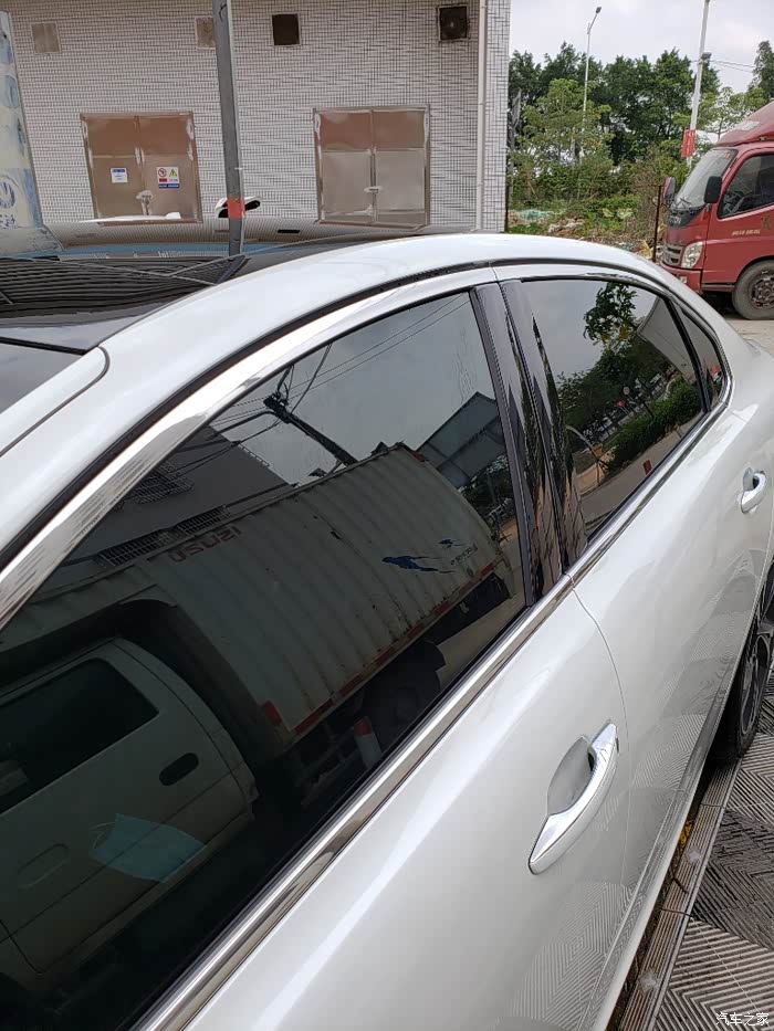 考虑到日后年审对车膜颜色与透视率可能有的要求,经过现场比对,最后选了前档浅、后档深的方案。开始还有点担心色差太大破坏整车的视觉观感,贴好后发现效果很好。只有在光线非常明亮的时候从侧面看才有明显视觉差异,一般光线及近距离情况下几乎看不出太大差别。