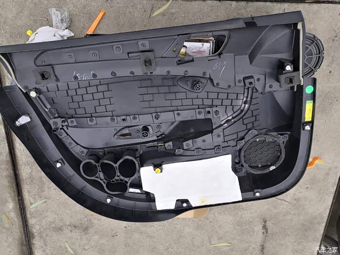 门板构造,白色的是卡子。冬天温度太低,没有贴止震和隔音,怕粘不牢,等夏天再搞。