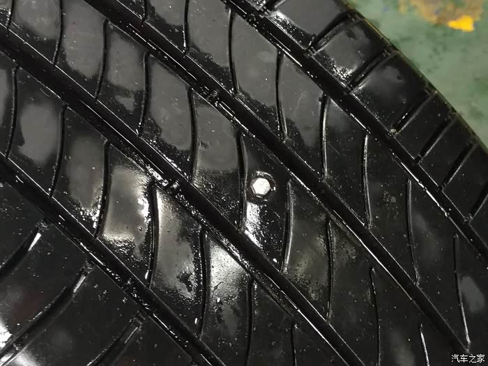 可怜的大脚被扎的透心凉啊。一个大洞,考虑了下,还是采用蘑菇钉的方法来补胎。