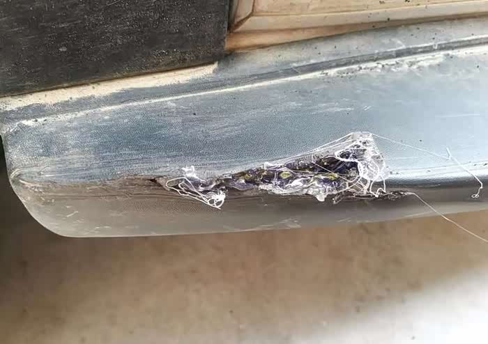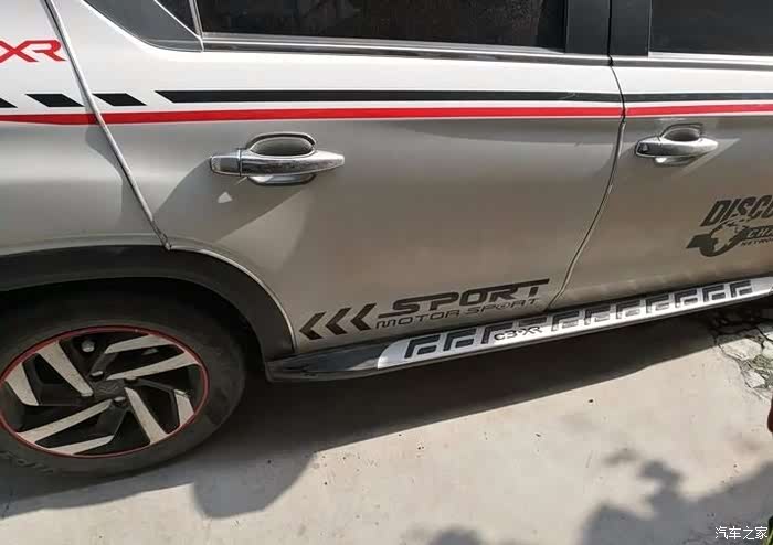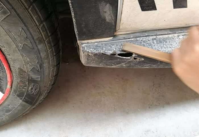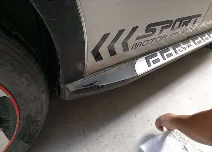 看着没。。。好大的一个口子。倒车的时候蹭到我们工地的大车的保险杠上了。。。当时,卡车一声,心的碎了,不过幸亏有侧踏,要不然。。。这个侧踏刚换了没多长时间呢,再换个就太浪费了。。再说人家也不卖一侧的不是。。没法发,咱那勤劳的小手,又得发挥作用了~