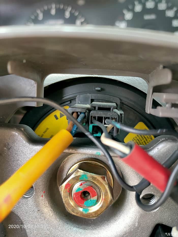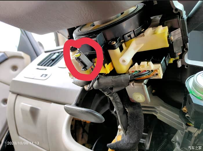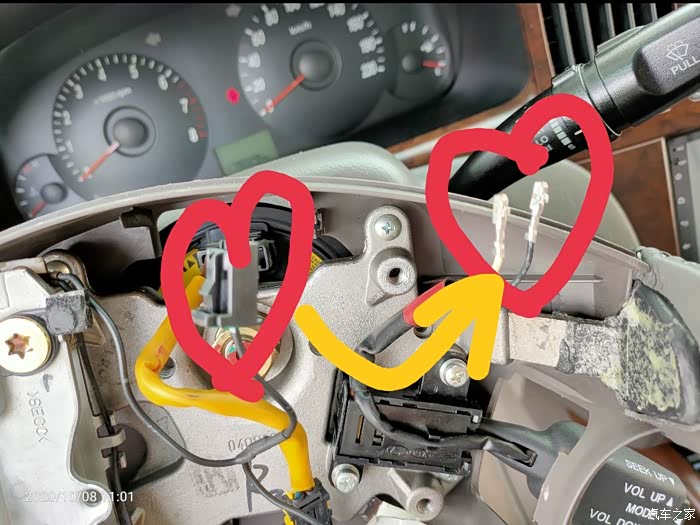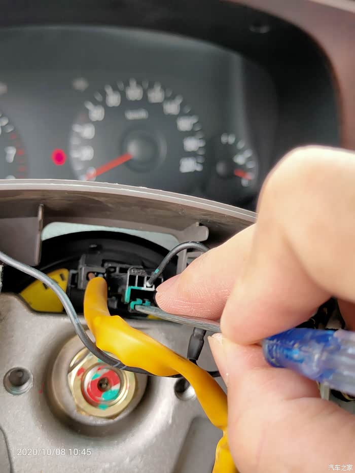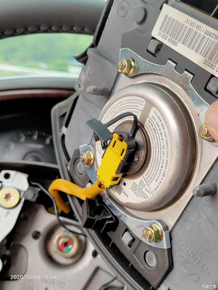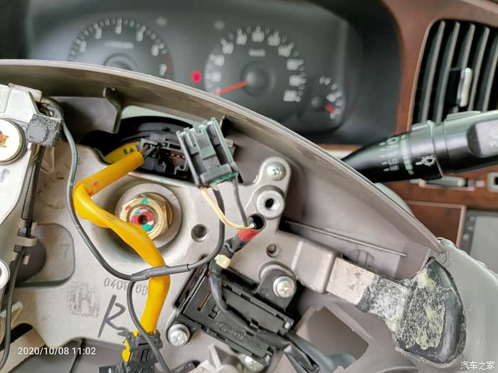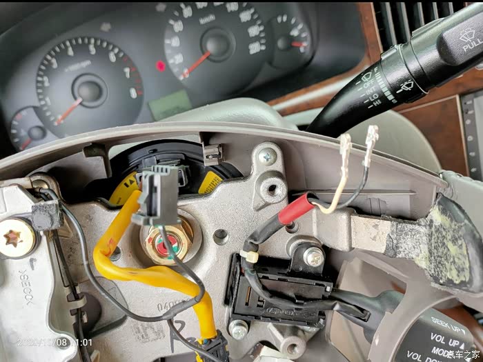 打开方向盘下面的盖子,即见游丝上对应下来的接口,重点的事情说1遍:04、05年的车有预留线,不用换游丝