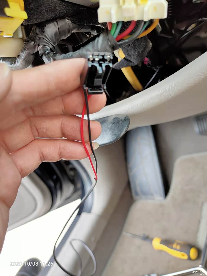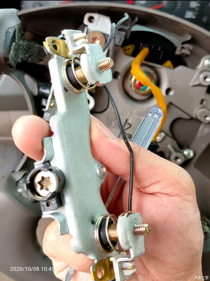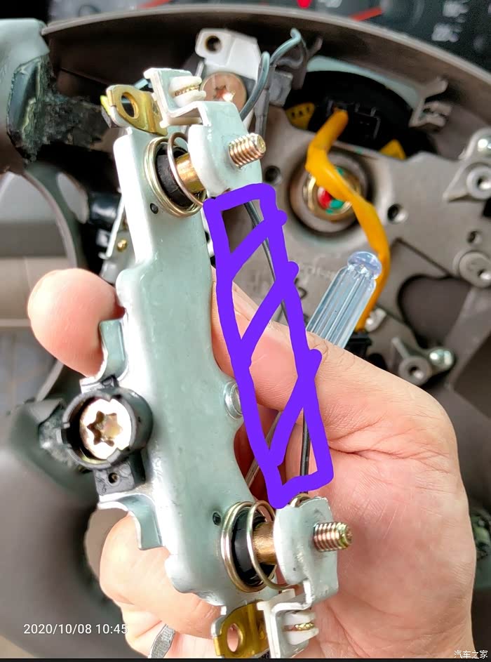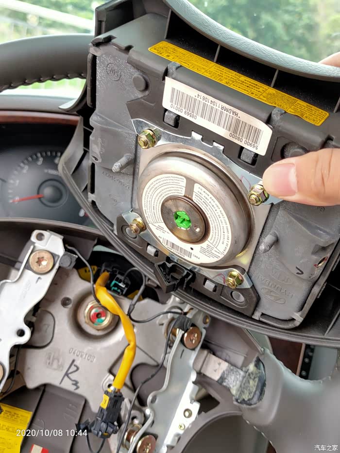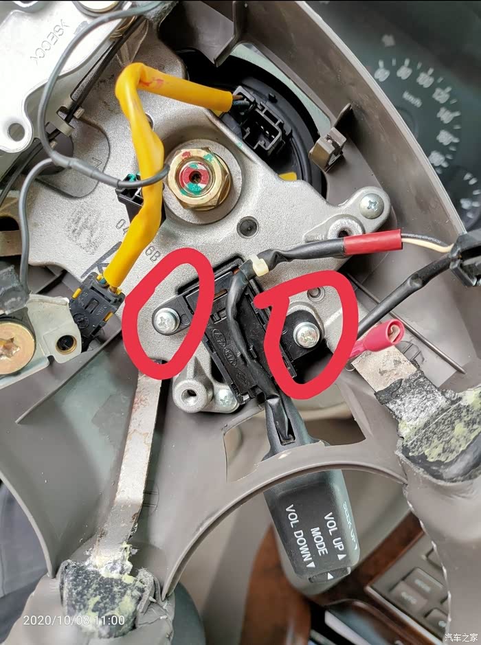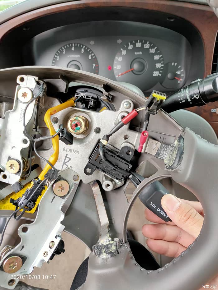 打开方向盘下面的盖子,即见游丝上对应下来的接口,重点的事情说1遍:04、05年的车有预留线,不用换游丝