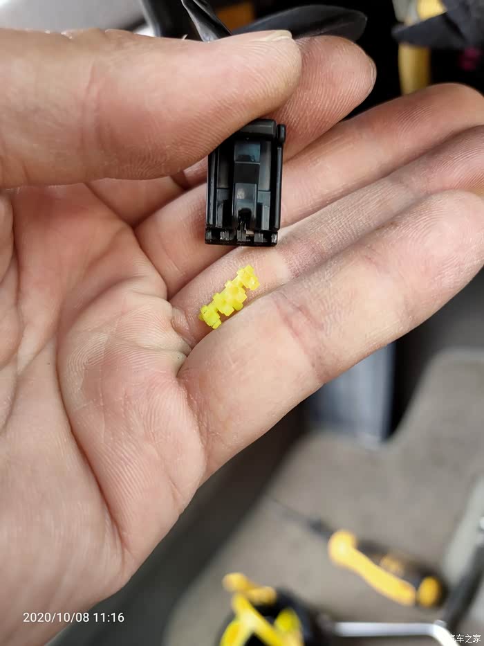 撬开黄色卡扣,因为要加线……