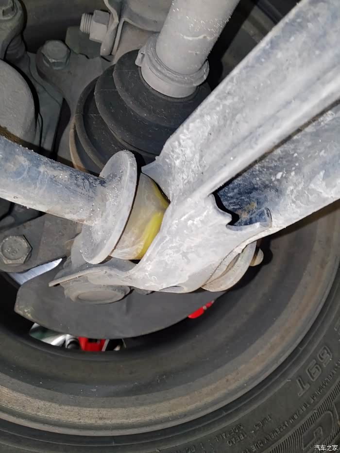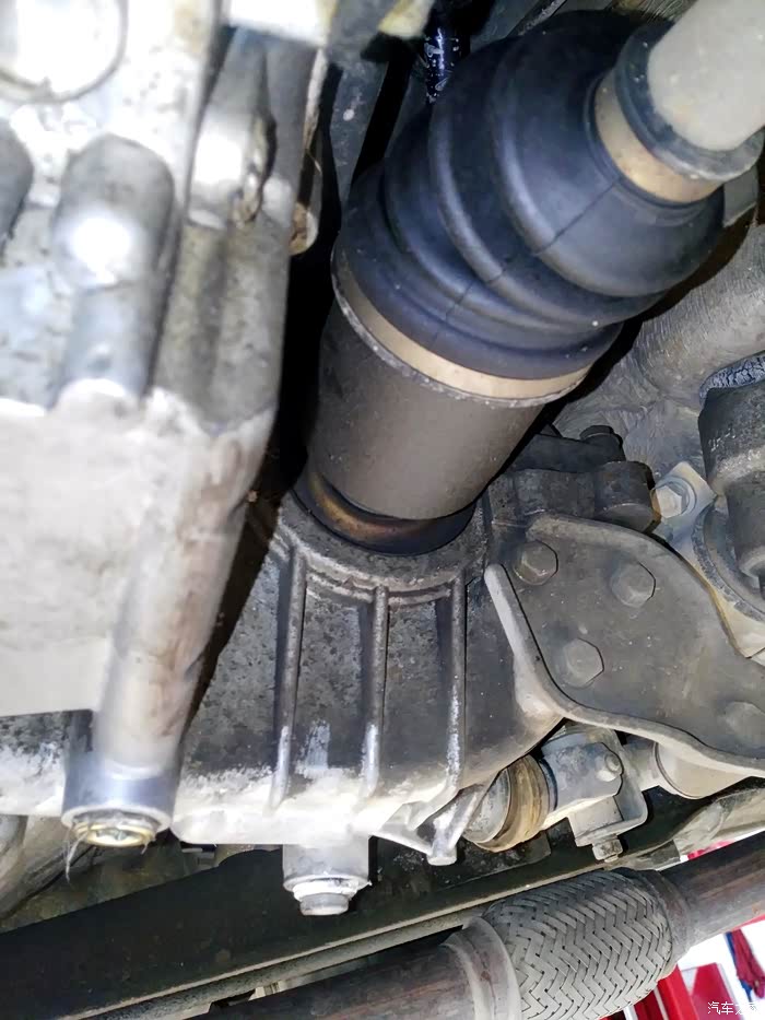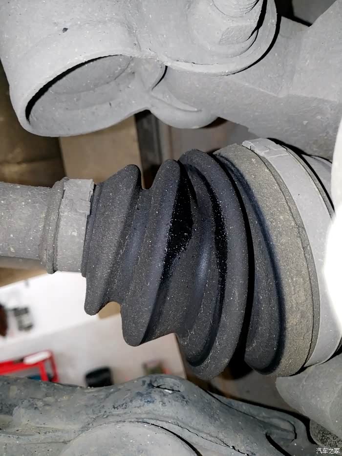 外球笼防尘套有点阴油,说明有细小裂纹。毕竟六年了,继续观察吧。防尘套我有一大堆,坏了就换,不是难事。