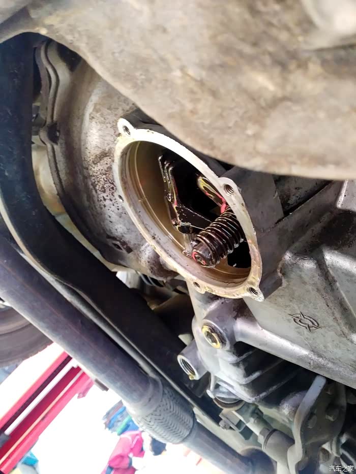 然后在我紧张的注视下,师傅小心翼翼的把换挡轴盖取下来了。