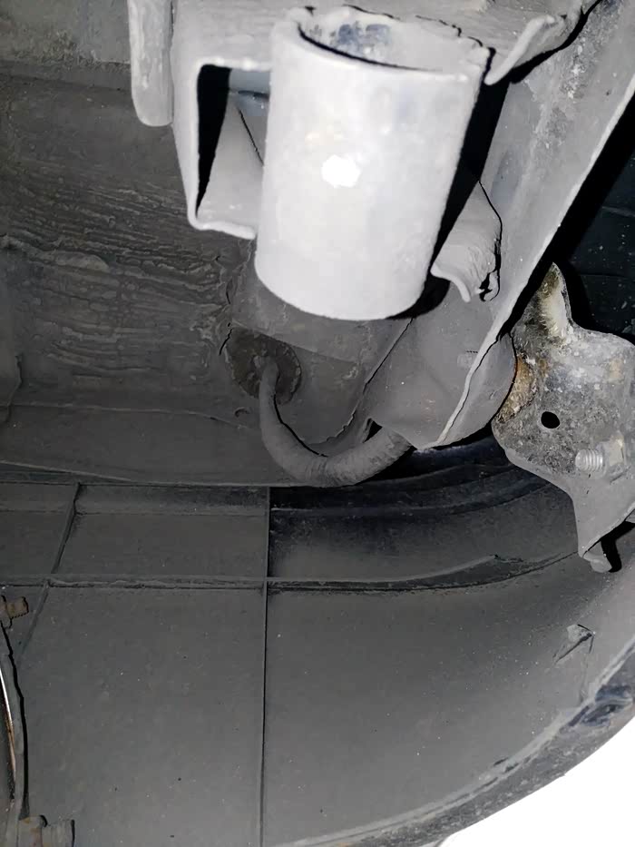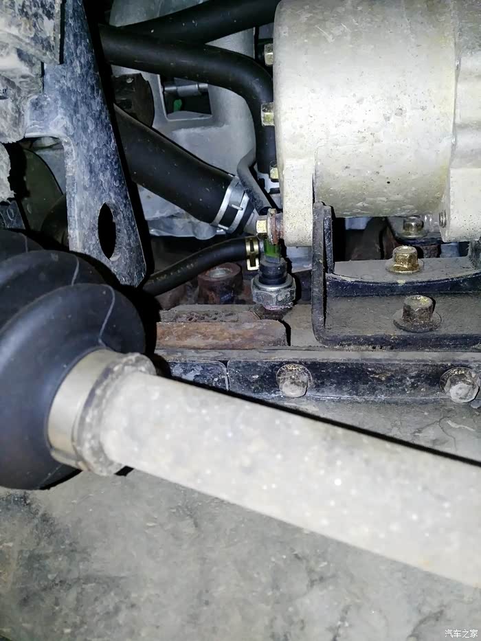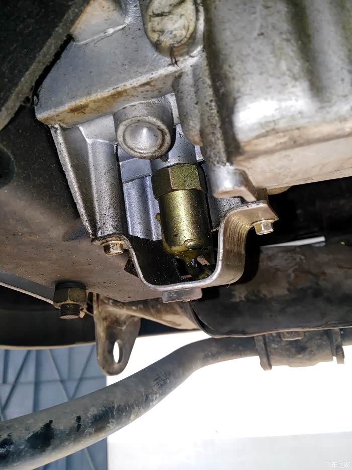 上次有车友问机油压力传感器在哪。发动机后面,从油底壳往上看,图片中央那个金属塞子就是。