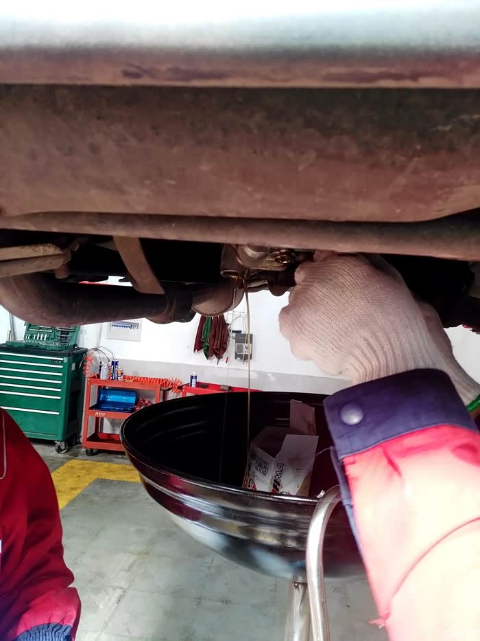 先放出旧的变速箱油。冰红茶的颜色。